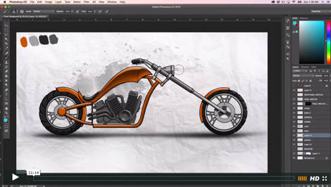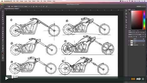 You will learn to create professional mood boards and initial ideation sketches in Adobe Photoshop. You will learn how to import & blend images, add watermarks and color. You will also learn how to design an American Chopper and how to render this design in Photoshop.