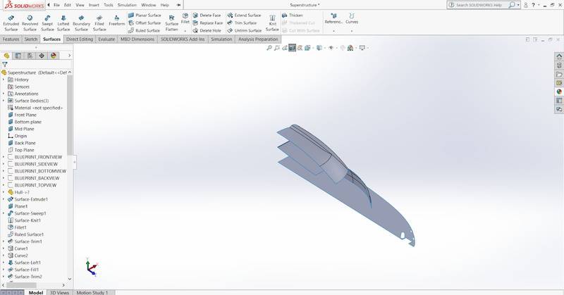 In this module, you will learn about the surface modelling feature in SOLIDWORKS. You will learn how to create a part using a reference surface. You will be taught advanced surface modelling features while creating various parts of the Yacht such as Hull, the Superstructure, and Seats. You will learn how to add decals and appearance for the parts and assembly.